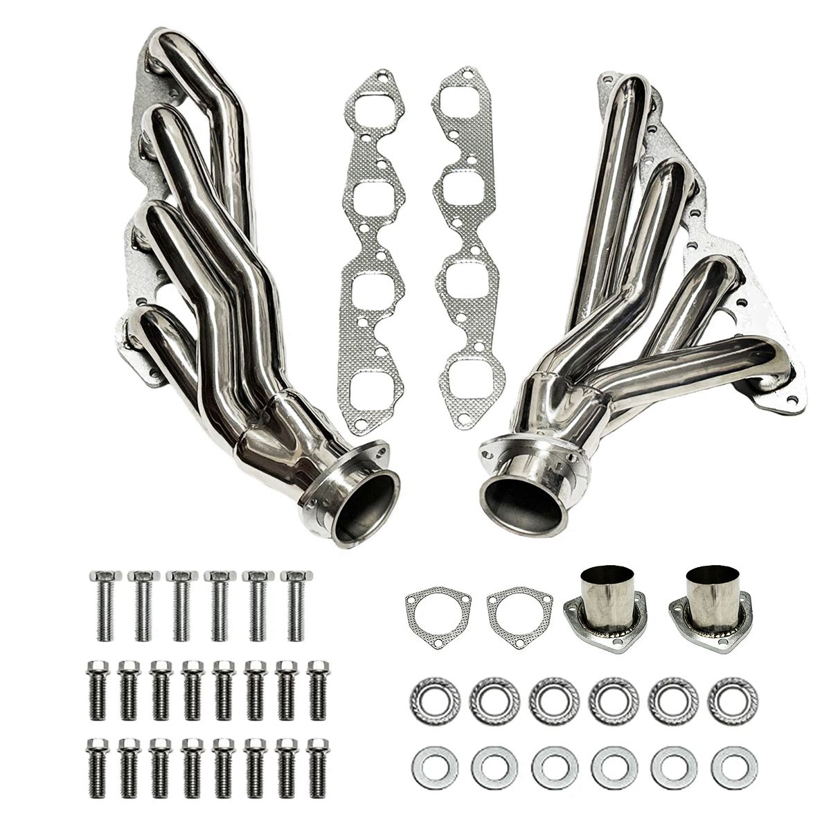 Crafted from high-grade T304 stainless steel, these 454 headers and 427 Chevy headers offer superior durability and corrosion resistance compared to mild steel alternatives. The 1-3/4" primary tubes are precisely sized to optimize exhaust velocity, making them ideal for the street where broad torque output is essential.